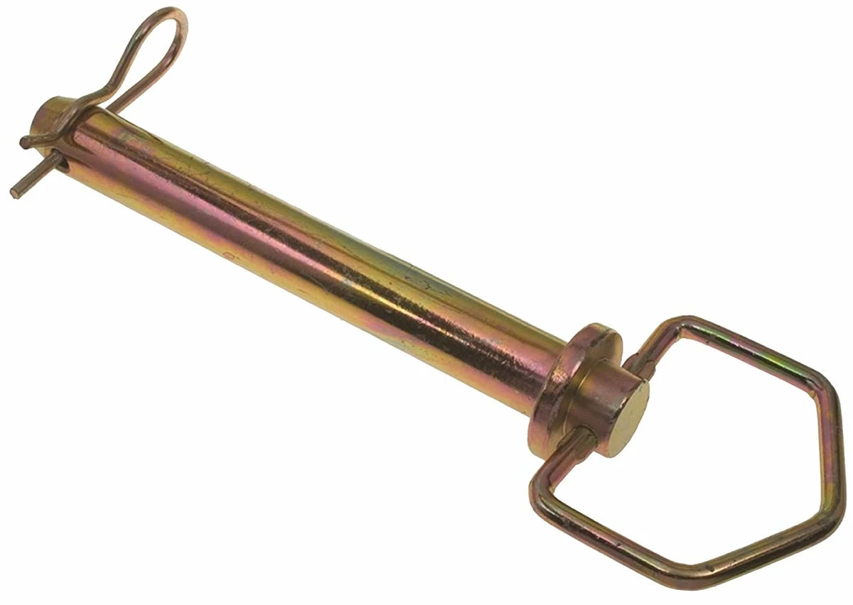 - Forged head hitch pin with swivel handle and zinc plated “R” clip pin