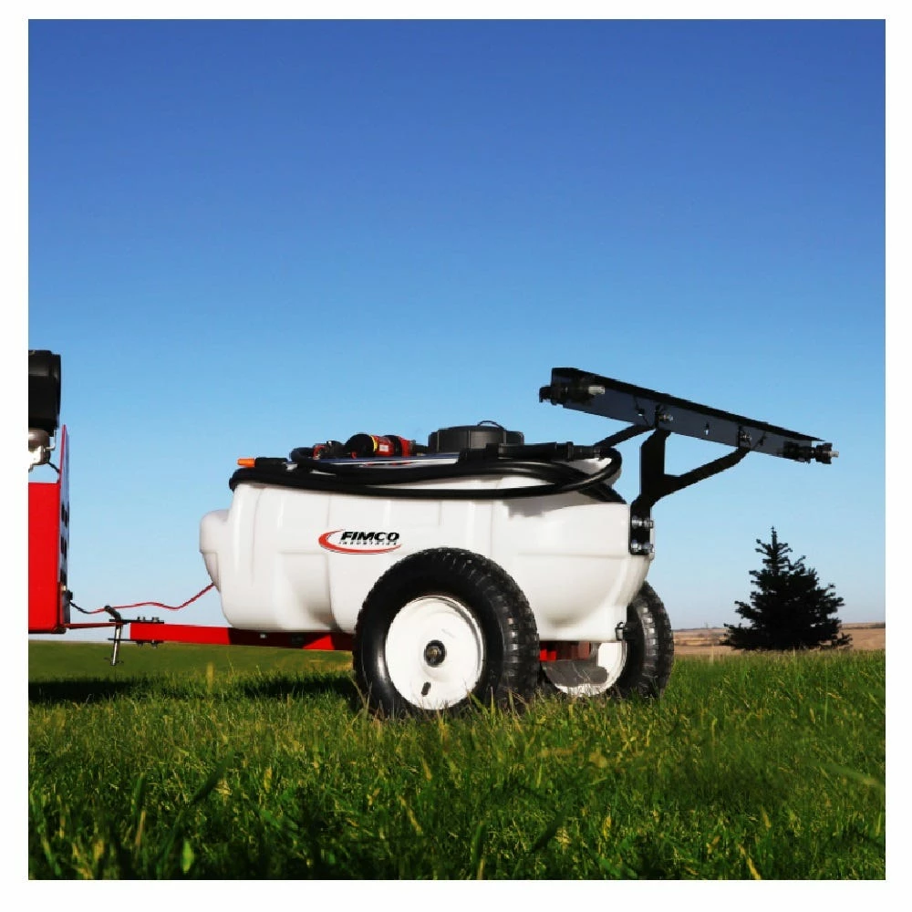 The FIMCO 15 Gallon Value Trailer Sprayer with 1.2 GPM Pump and 2 Nozzle Boom is designed for the homeowner needing an economical high performance sprayer. The UV resistant, molded polymer tank has a 5 inch tethered lid for easy access and is completely drainable. This model features the High Flo High Performance 1.2 GPM. The Lever Handgun distributes up to 20 feet of horizontal spray, 12 feet of vertical spray and comes with 15 feet of 3/8 inch hose. The 2 Nozzle boom offers 7 feet of total spray coverage with FloodJet tips for less wind drift and no drip check valves. This sprayer is ideal for small pastures and rural properties.