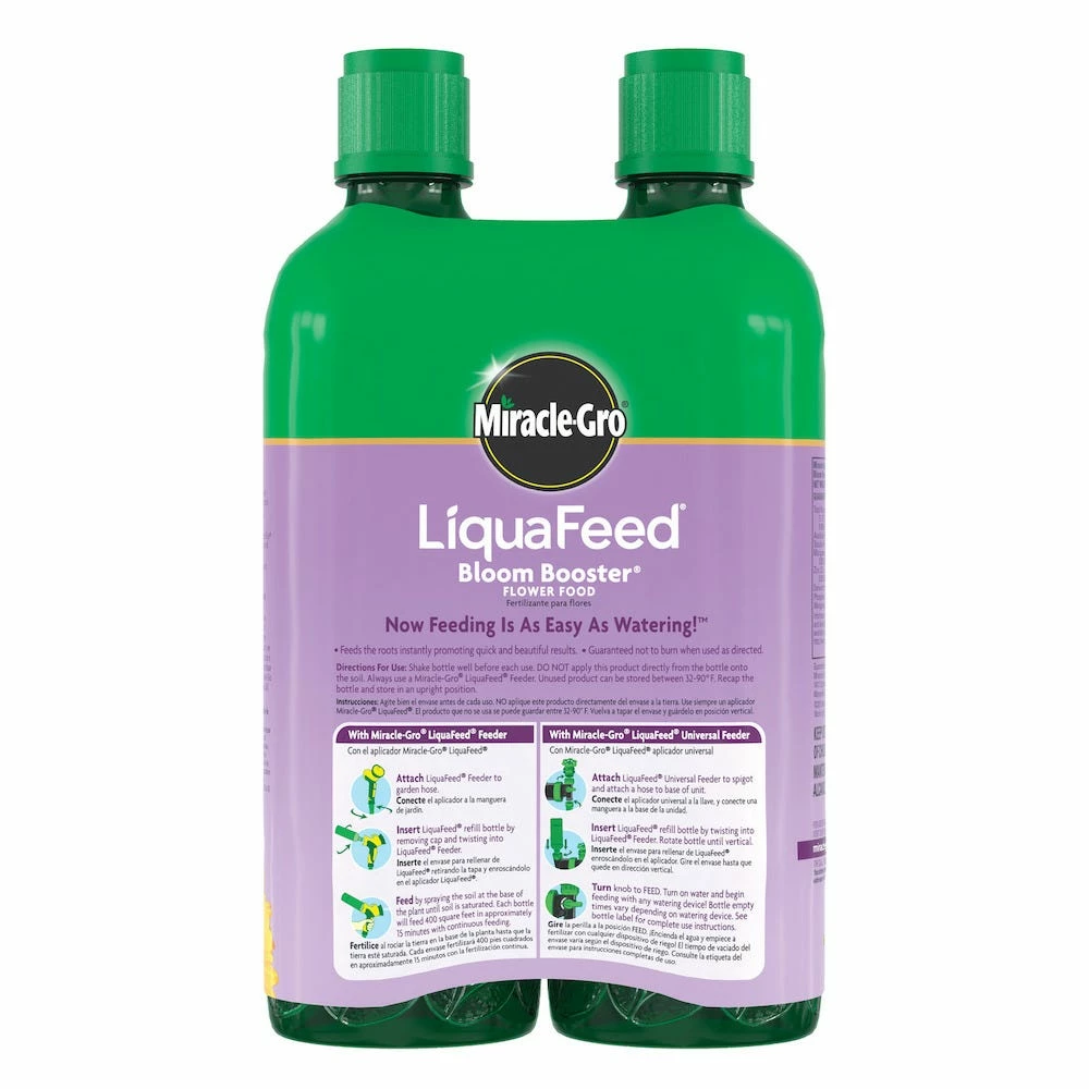 Miracle-Gro LiquaFeed Bloom Booster Flower Food promotes more blooms for greater color compared to unfed plants. Feeding is as easy as watering. Just use a Miracle-Gro LiquaFeed Feeder and apply to your plants every 1-2 weeks.