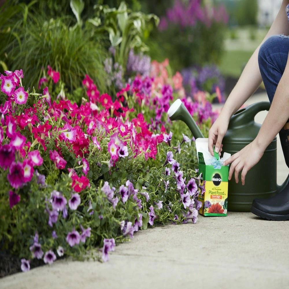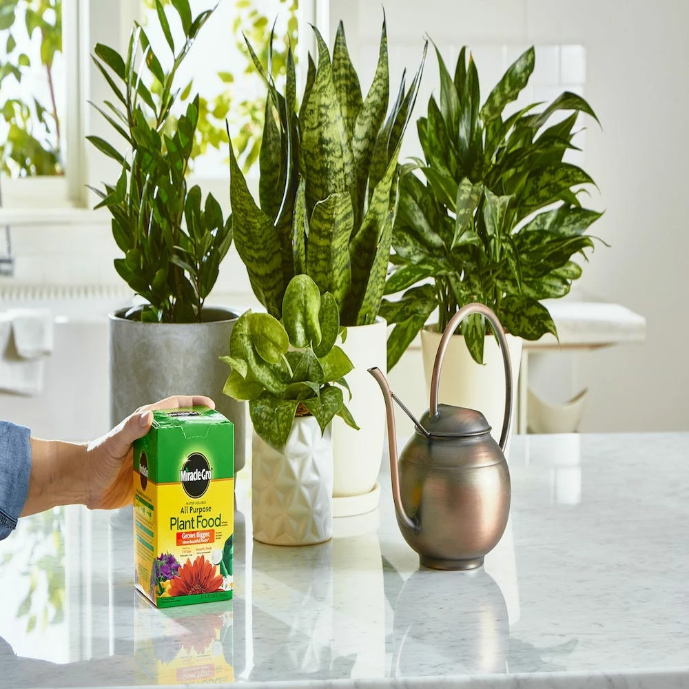 Miracle-Gro Water Soluble All Purpose Plant Food instantly feeds vegetables, trees, shrubs, and houseplants to grow bigger and more beautiful than unfed plants. Simply feed them every 1-2 weeks. The formula is safe for all plants, and is guaranteed not to burn when used as directed. Get beautiful results with Miracle-Gro.
