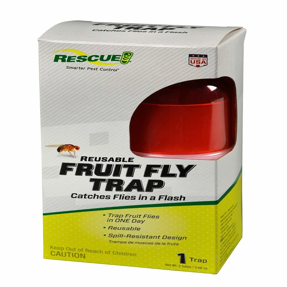 This trap uses a food-based lure and color proven attractive to fruit flies. Simply add the liquid attractant to the trap and it starts catching fruit flies within minutes. Each trap comes with a 30-day supply of attractant and is reusable with RESCUE! Fruit Fly Trap Attractant Refills.
